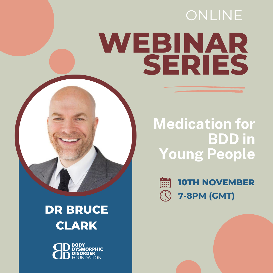 Join us for a session with Dr Bruce Clark, a senior Consultant Child and Adolescent Psychiatrist and an expert in OCD and BDD, leading the National and Specialist OCD, BDD and Related Disorders Service at The Maudsley Hospital. Bruce will be exploring the role of medication in treating BDD in young people.